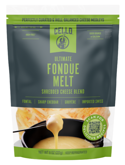 Cello Ultimate Fondue Melting Cheese Blend – Only Cello® can bring you a quartet of distinctive cheeses that blend together in delicious harmony to make creamy, dreamy dishes as easy as they are flavorful. This curated medley of award-winning Fontal, Sharp Cheddar, Gruyere, Imported Swiss is the perfect blend for your next Fondue night.