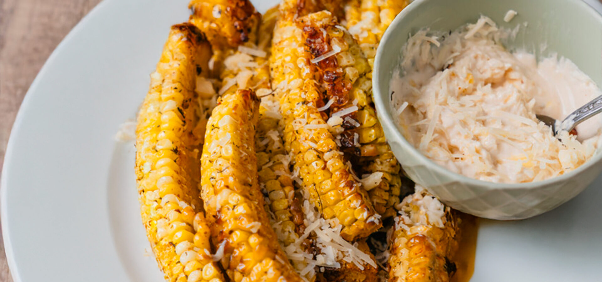 - Serve the hot corn ribs in a bowl with the dip on the side. Finish with a squeeze of fresh lime juice and an extra sprinkle of Parmesan.
